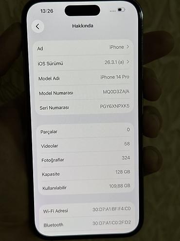 Salam 14 pro nöqtə cızıq yoxdur çox səliqəlidir hər bir funksyası aktivdir 128 yaddaş 6 ram 78 Ekrani deyisib orjinali ile Orjinal usb var ✅
