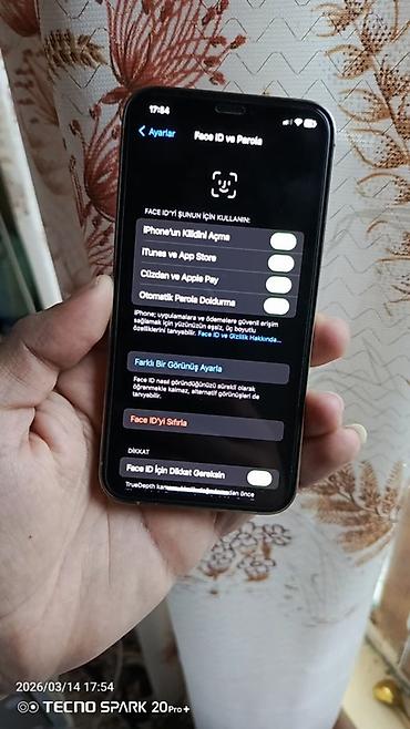 - Face ID biometrik təhlükəsizlik (Ayarlar ekranında aktiv seçimlər görünür)