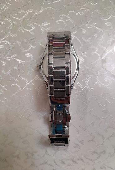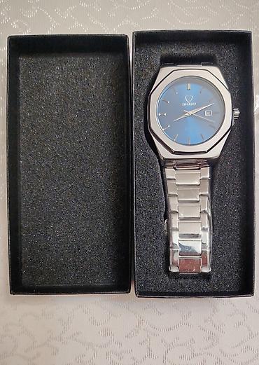 - Rənglər: Gümüşü korpus və qolbaq, mavi siferblat, qızılı tonlu indekslər və əqrəblər