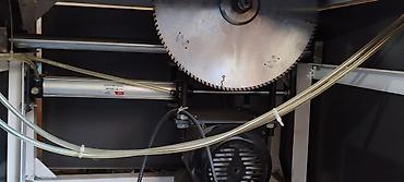 PVC/Alüminium pəncərə-qapı istehsalı üçün dəst avadanlıq - Göncə tipli kəsim mişarı: böyük diametrli disk, bucaq üzrə kəsim üçün tənzimlənən dönər masa, təhlükəsizlik örtüyü, yan dayaq və kilidləm...