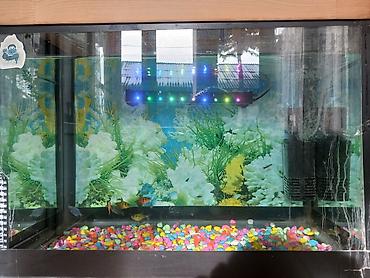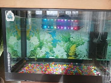 - Üst hissədə çoxrəngli LED işıqlandırma (rejimli), balıqların və dekorun rəngini vurğulayır