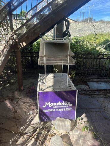 - Qırmızı metal “Çiko” brendli ticarət stendi: üst hissədə asma üçün qarmaqlar, aşağı hissədə çoxsəviyyəli tor səbətlər. Şirniyyat, saqqız, qəlyanaltı və kiçik qablaşdırmalar üçün uyğundur.