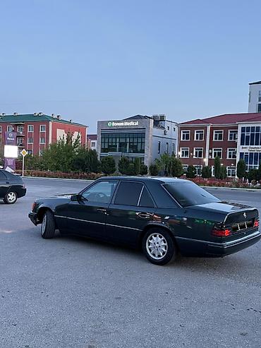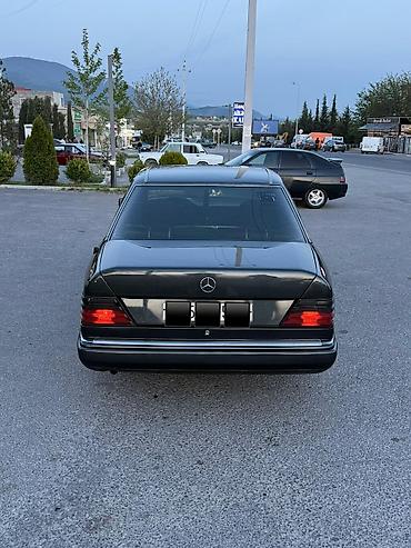 Mercedes-Benz E-Class W124 sedan - Kuzov: sedan, tünd mavi rəng - Mühərrik: benzin (detal göstərilmir), arxa ötürücülü klassik W124 platforması - Transmissiya: mexaniki/avtomat barədə şəkillərdə m...
