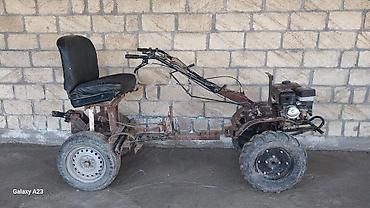 - Dörd təkərli şassi: arxa ox və oturacaqla çərçivəyə yığılmış, motobloku oturacaqlı mini‑traktora çevirir.