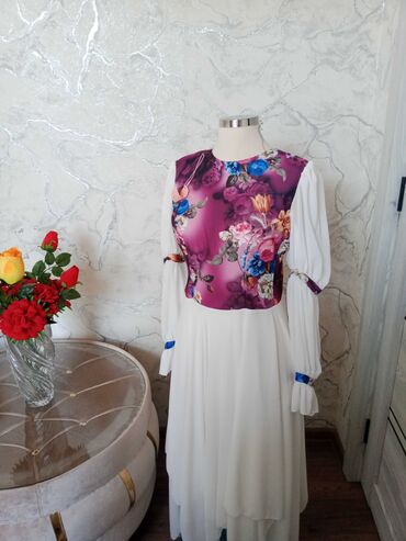 Qırmızı gecə/libas - Rəng: dərin qırmızı (şərab tonu) - Model: Uzun, axıcı tüll ətəkli geyim - Üst hissə: şəffaf tüll üzərində zəngin applike və muncuq/daş bəzəkləri, çiçək motivləri - Yaxa: dərin...