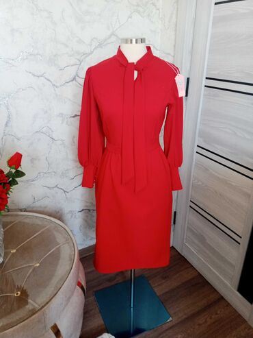 - Bağlanma/detallar: Ön hissədə kiçik açılış və düşən lent, bel xəttini müəyyən edən dar kəmər effektli tikiş.