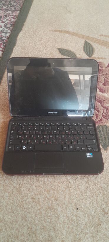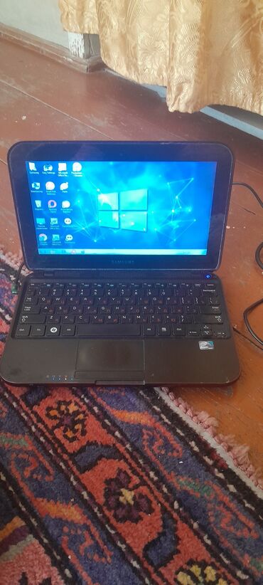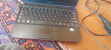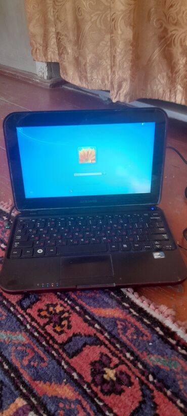 Samsung netbuk – qırmızı bordovı korpuslu, kompakt 10–11 düym ekranlı model.