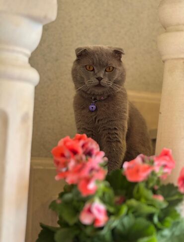 Şotland qıvrımqulaq pişiyi – boz (blue) rəngli, qısa tüklü. Cüt vurmaq istey elaqe saxlasin - Cins: Scottish Fold - Rəng: Bərk boz (blue), qısa və yumşaq tüklər - Qulaqlar: İrəli qatlanmış, cinsəxa...