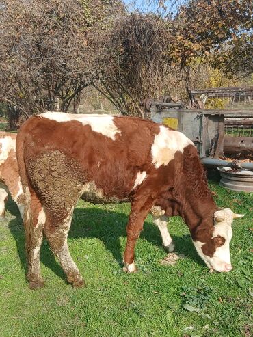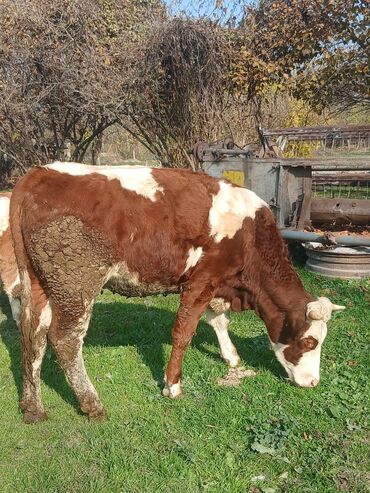 Satılır: inək 3aylığ erkək balası var - Cins: simental (şəkildə göründüyü kimi, qəhvəyi rəng, alnı açıq rəngli) - Buynuzlu, sakit xasiyyətli, otlaqda rahat güdülür - Sağım üçün münasib, süd və bu...