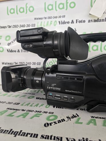 - Sony HD shoulder-style videokamera (HDD/Memory Card yazma, “HD” qeyd, “G Lens”, “Optical SteadyShot” sabitləşdirmə, 7.1 MP foto rejimi, 20x optik zoom göstəricisi etiketta)