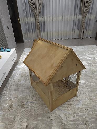 Taxta qəfəs/volyer – dekorativ ev şəklində - Material: təbii taxta