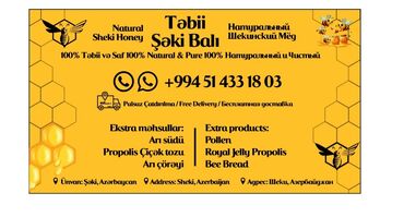 - Şəki, Azərbaycanın dağətəyi florasından toplanmış 100% təbii və saf bal.