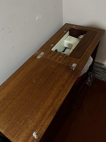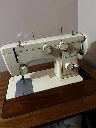Ev tikişi, pərdə-düzəliş işləri və qalın/parça qatları üçün uyğun klassik sovet istehsalı mexanika. Maşın istifadədən sonra stolun içinə endirilərək yerə qənaət edir və səthi iş masası kimi istifadə olunur.