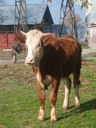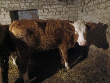 Simmental tipli inək - Rəng: açıq-qəhvəyi gövdə, ağ baş və sinə - Qulaq birkası mövcuddur (identifikasiya nömrəsi görünür) - Geniş döş qəfəsi, möhkəm skelet və yaxşı əzələ quruluşu - İnəkdir; inki...