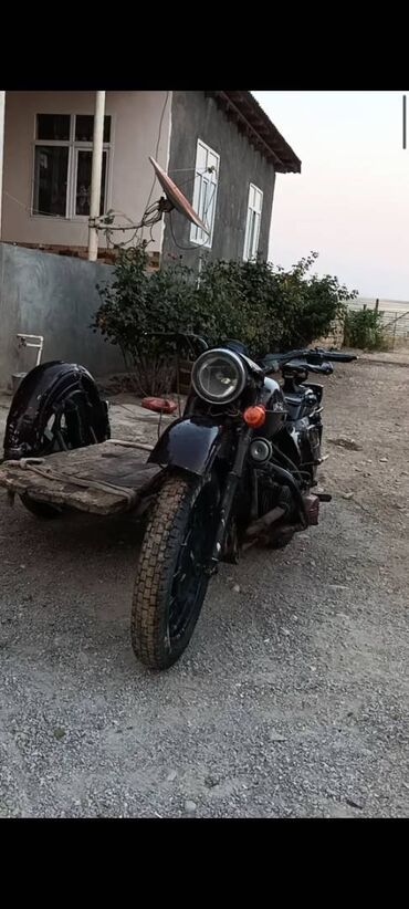 URAL yük daşıyan üçtəkərli motosiklet - Gövdə rəngi: mis/portağal - Kabin: qalın metal korpuslu, ön şüşə və şüşə silgisi ilə; yanları açıq keçidli - Mühərrik: benzinli, hava ilə soyudulan tək sili...