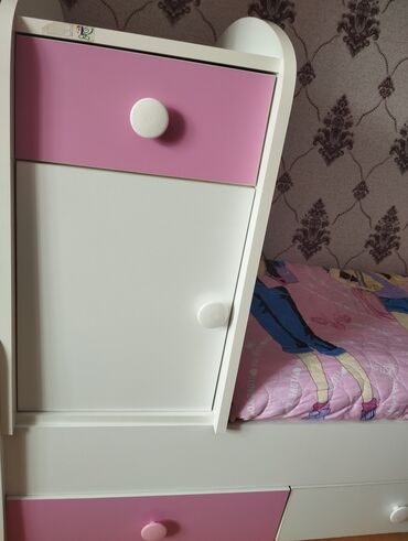 Qız uşaqları üçün zərif dizayn, otaqla ahəngdar rənglər. Dəst praktik saxlama yerləri və gündəlik istifadə üçün rahat funksionallıq təqdim edir.