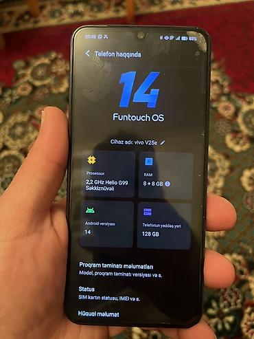 Vivo V25e smartfon - Ekran: Damla-notchu, Funtouch OS 14 interfeysi (Android 14 əsaslı) - Prosessor: MediaTek Helio G99, 2.2 GHz, səkkiznüvəli - Operativ yaddaş: 8 GB + əlavə 8 GB RAM genişləndiri...