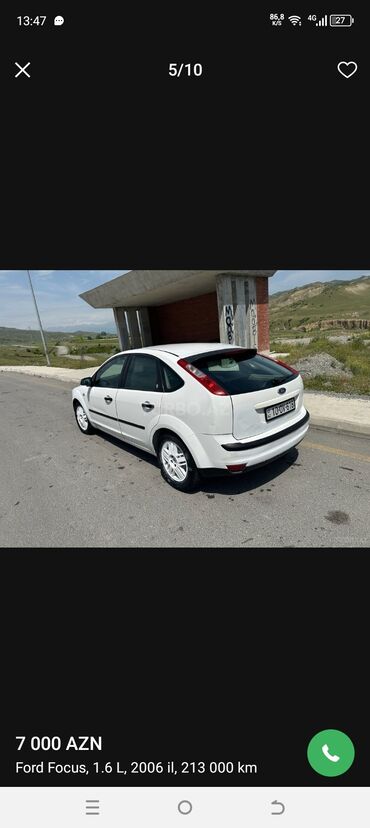 Ford Focus sedan – ağ rəng, AZ qeydiyyat nömrə nişanı 20-FC-269. Xüsusiyyətlər: - Kuzov: 4 qapılı sedan - Rəng: ağ - Ön LED gündüz işıqları, projektor tipli faralar - Qara radiator barmaqlığı, aer...