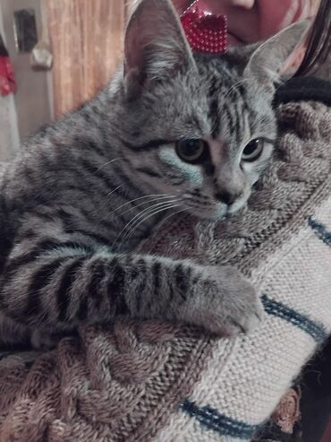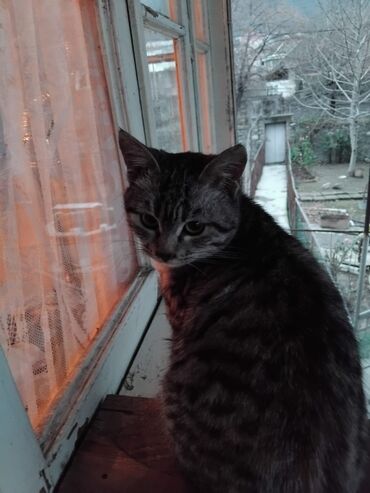 Ev pişiyi – zolaqlı-çəhrayı burunlu Adı Mia.Qurd,bit dərmanı olunub,tam sağlamdı,heç vaxt xəstələnməyib.Vaksinləri də olunun.Qum tərbiyəsi var.9-10 aylıqdır.Dişidir.Yaxşı əllərə,pişik sevən insanla...
