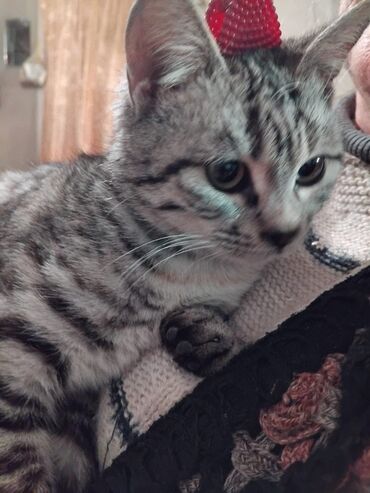 Məhsul: Ev pişiyi balası Təsvir: - Cins: Ev pişiyi (qısatüklü), tünd-boz zolaqlı “tabby” naxışlı. - Yaş görünüşü: baladır, kiçik ölçülü. - Xarakter xüsusiyyətləri: mehriban, insanla ünsiyyətə açıq...