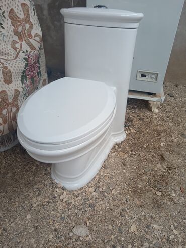 - Bir hissəli (monoblok) keramik unitazlar, üstdən düyməli su çəni ilə.