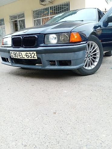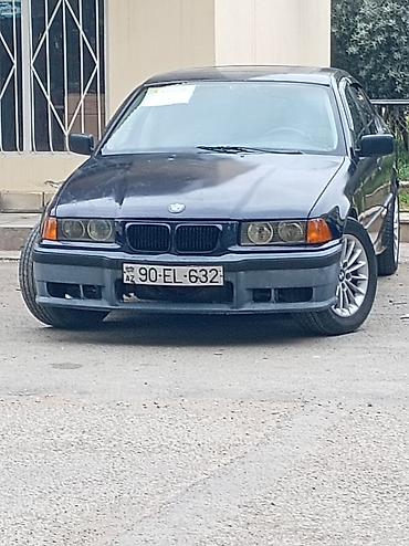 BMW 3 Series (E36) sedan - Kuzov: 4 qapılı sedan, tünd mavi rəng - Mühərrik: benzin - Sürətlər qutusu: avtomat - Ötürmə: arxa - Salon: qara parça oturacaqlar, ön və arxa başaltılar, tənzimlənən sü...