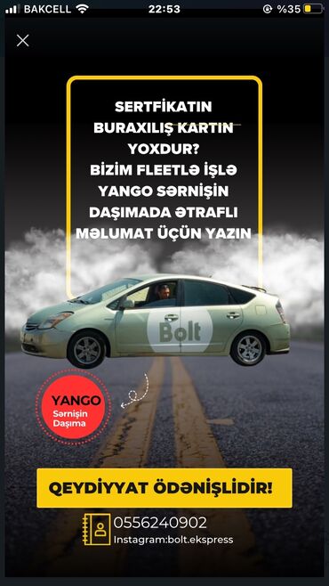 Öz siman və öz maşının qeyd olunaraq bolt çatdırılma hesabı açılır bolt drive proqramının içində açıb verilir kategoriya açılır çıx işlədə nə dəyanmısan.