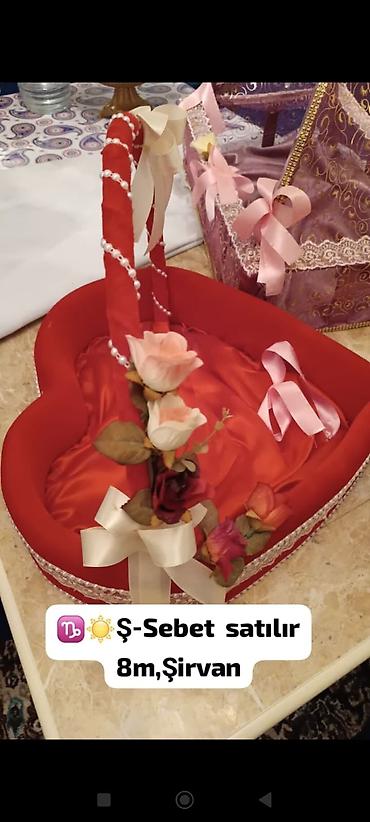 Şirvanda Ş-Sebet - Dəbdəbəli əl işi səbətlər: biri ürək formalı qırmızı, digəri bənövşəyi-çəhrayı tonlarda klassik model. - Atlas/parça örtüklü yumşaq içlik, incə krujeva və zərif qızılı naxış det...