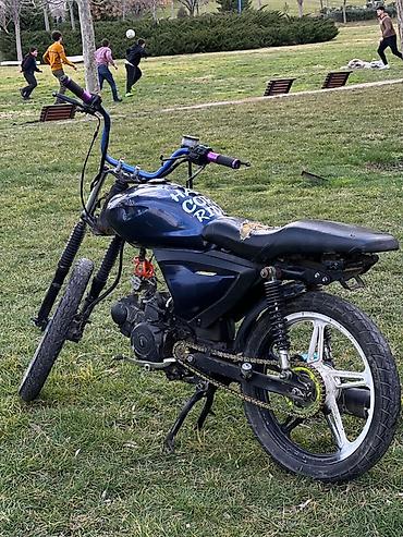 - Çərçivə və kuzov: yüngül moped əsaslı, tünd-mavi/qara rəng sxemi, dekorativ stikerlər