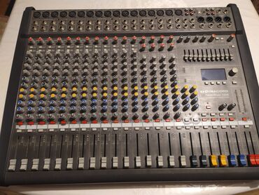 - Kanallar: tam ölçülü faderlərlə çoxkanallı quruluş, hər kanalda gain, 3‑zolaqlı EQ, AUX/monitor göndərişləri, pan və mute/solo idarələri