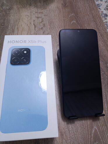 Honor smartfon Xüsusiyyətlər: - Model: X5 Plus (etiket üzərində) - Rəng: Qara, mat arxa səth - Ekran: Tam ekran ön panel, damcı formalı ön kamera çıxıntısı - Arxa kamera sistemi: İki dairəvi modul...