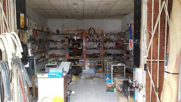 - Daxildə divarboyu rəflər, vitrin stendləri və iş masaları quraşdırılıb.