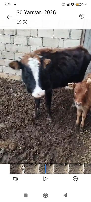 Südlük inək və dana - Qara-ağ rəngli, iri sağım məməli südlük inək - Yanında eyni rənglərdə balası (dana) var - Geniş və dolu süd vəzisi, dörd məmə – əl və aparatla sağım üçün münasib - Sağlam bəd...