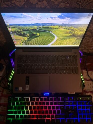 - Üzərində Lenovo soyutma/stand qurğusu yerləşdirilib (mavi rəqəm indikatoru ilə)