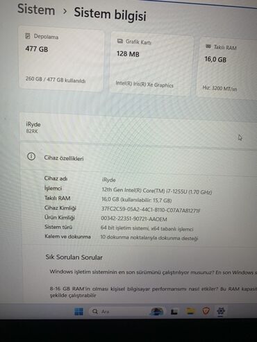 Gündəlik ofis işi, təhsil və multimedia üçün uyğun konfiqurasiya. Şəkillərdə cihazın ekran görüntüləri, klaviatura quruluşu və üst qapaq dizaynı əks olunub. (Whatsapp 0559542552) 16 gb ram 512 ssd core i7 12 ci nesil intel iris xe graphics