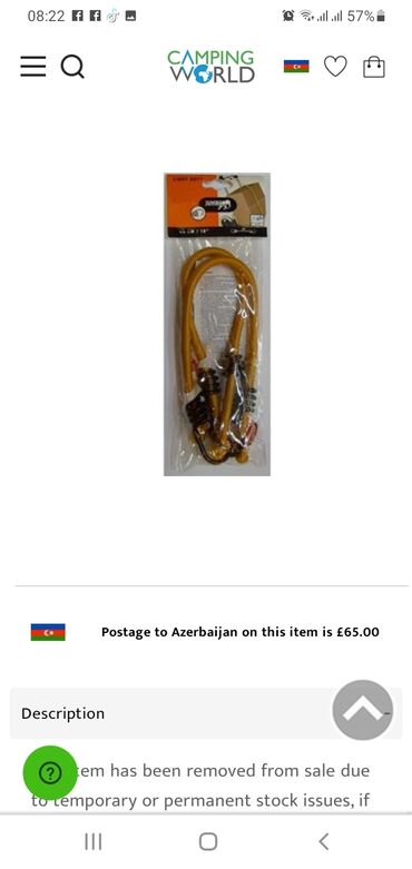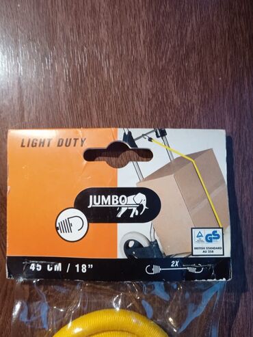 (Jumbo- light duty bungee strap yellow 18"). Made in: Netherlands.