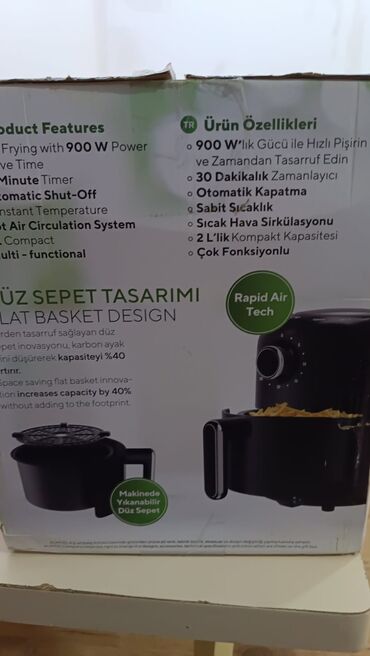 Yenidir işlənməyib yenisi mağazalarda 135-150 azn arasındadır.Hoffmans Electronics HM-778 Air Fryer - Tutum: 10 litr - Güc: 2000 W - Enerji sinfi: A - Mexaniki idarəetmə: 2 fırladıcı düymə (temper...
