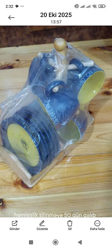 - Fincan və boşqablardan ibarət dəst: Mavi-sarı rəng çalarlarında, orijinal şəffaf qablaşdırmada. Dəstə fincanlar və altlıq boşqablar daxildir; çay və qəhvə servisi üçün uyğun.