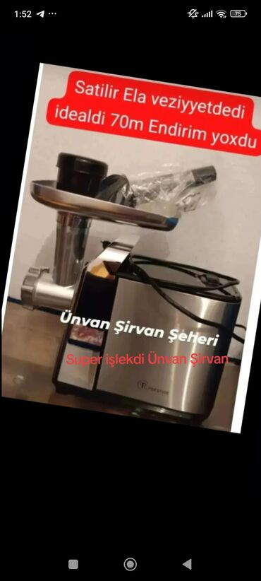 Mətbəxdə ət üyütmə, kotlet, kabab, kolbasa üçün içlik hazırlama kimi işlərə uyğundur; rahat sökülüb yuyula bilən hissələr. Super işləkdir (şəkildə qeyd olunub).