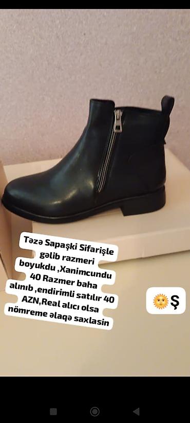 Qadın ayaqqabısı 10 azn. 39 razmerdir. Penceli ayaqlara dar gele biler. 38de geyine biler içi tüklüdü. İsti saxlayır. Keçen il 45 manat alınıb. Çatdirilma qara qarayev