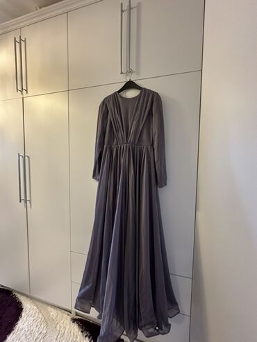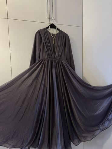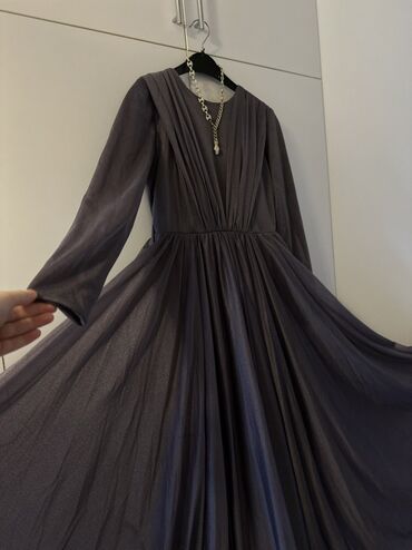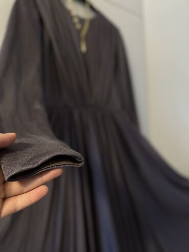 Brend: SARIHAN New Line Beden: 36(S) 1 defe geyinilib.Yeni kimidir. Pelerin uzundu.Yere kimidir - Rəng: tünd bənövşəyi (şax və dərin ton) - Model: Uzun, axıcı siluetli, qollu, yüksək yaxalı abi...