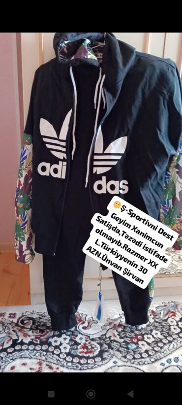 Məhsul: Qadın triko idman dəsti (2 parça) - Rəng/naxış: Tünd mavi fon üzərində iri çiçəkli print (sarı, qırmızı, çəhrayı tonlarda güllər) - Dəst: - Uzunqol svitşört – manjet və ətək hissəsi ela...