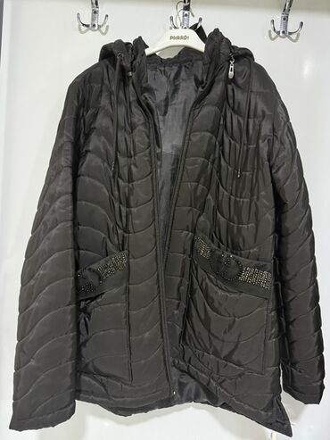 Qadın qış gödəkçəsi – qara rəng - Ölçü: XL (etiketdə görsənir) - Uzun dizayn, kalçadan aşağı örtür - Kapüşonlu - Romblı (romb naxışlı) kapitone tikiş - Ön hissədə tam uzunluğu əhatə edən metal ferm...