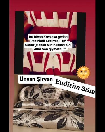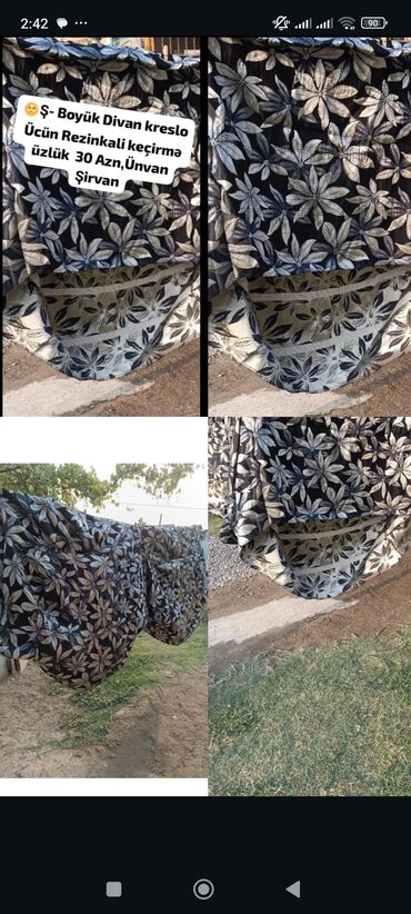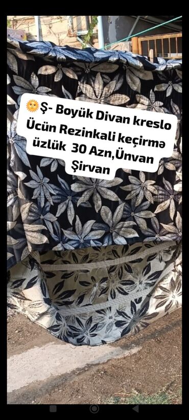 Divan və kreslo üçün rezinli, keçirilmə üzüklər - Ölçü: böyük divan və kreslo dəsti üçün - Material: qalın parça, çiçək naxışlı - Rənglər: tünd və açıq tonların qarışığı (ikiüzlü görünüş) - Rezin b...