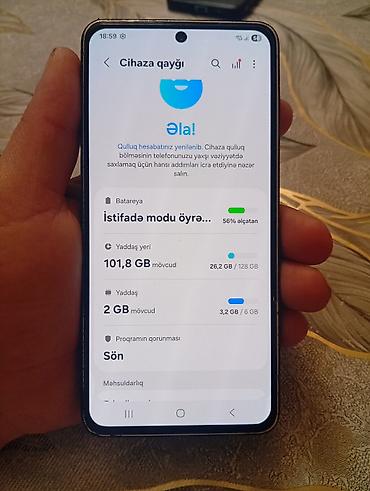- Yaddaş: 128 GB daxili yaddaş (şəkildə 101.8 GB boş yer görünür), 6 GB RAM