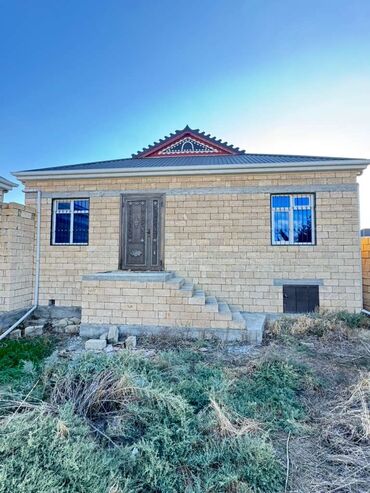 Satılır: həyət evi - Tam təmirli, daş hasarlı həyət evi; dəmir darvaza, hündür hasar, fasadda dekorativ daş hörgü - Üstü tam örtülü, sütunlu eyvan/veranda - Mərkəzi qaz xətti (sarı boru çəkilişi g...