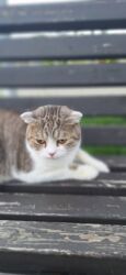 Scottish Fold pişiyi - Cins: Scottish Fold (qulaqcıqları bükülü) - Rəng: gümüşü-boz, zolaqlı naxış - Gözlər: böyük və ifadəli, yumru - Tük tipi: qısa və hamar - Quyruq: uzun, zolaqlı - Xarakter xü...