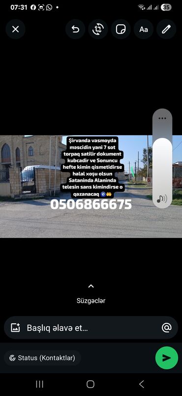 Şirvan şəhəri, Vasmoyda məscidin yanı – satlıq torpaq sahəsi.