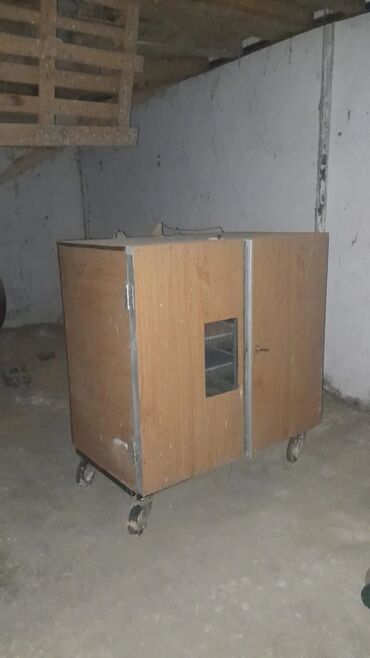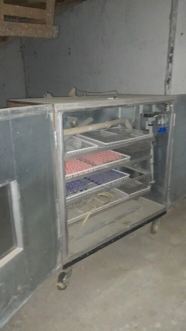 Böyük həcmli yumurta inkubatoru - Material: taxta karkas, alüminium bucaq profilləri və içəridən istilik izolyasiyalı (folqa örtüklü) divarlar - Qapıda müşahidə pəncərələri və kilidli bağlayıcılar...