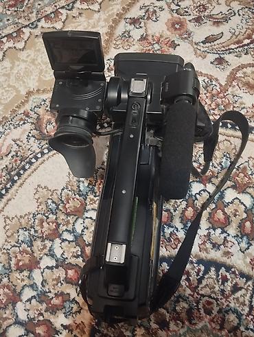 - Sony markalı dəyişən fokuslu obyektiv, önündə geniş lens qapağı/kaşıok (matte box tipli günbəngə)
